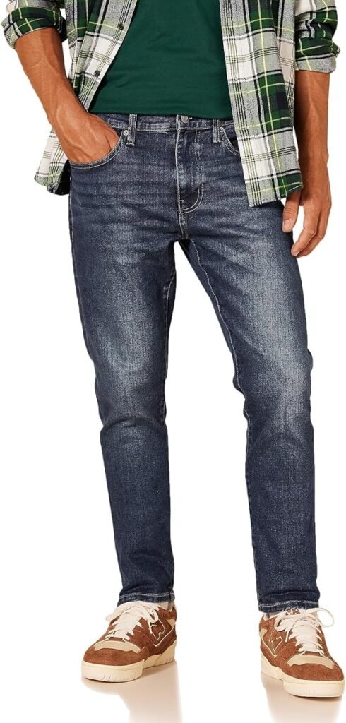 The Amazon Essentials Men’s Athletic-Fit Stretch Jeans are designed for men with an active build who need extra room without sacrificing a modern silhouette. These jeans offer a “best of both worlds” solution, featuring a roomier seat and thigh combined with a tapered leg that prevents a baggy look. Crafted from mid-weight denim with integrated stretch technology, they provide exceptional mobility for daily activities while maintaining their shape over time. The classic five-pocket styling and clean finish make them versatile enough for both casual office environments and weekend outings.