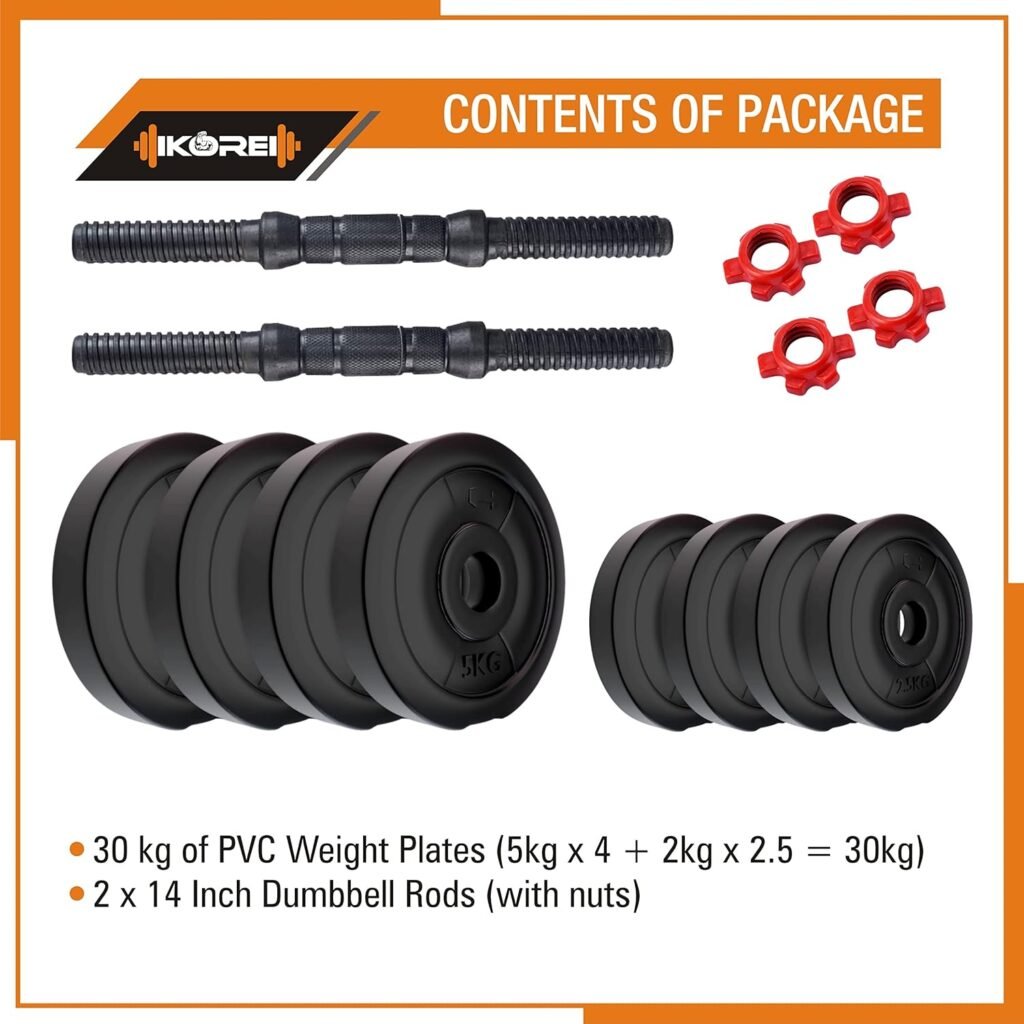 | 4 | Kore Pvc 30 Kg (5 Kg X 4 + 2.5 Kg X 4) Combo 16 Dumbbells Set, Multicolor | https://amzn.to/4rcojvc | ₹979 |