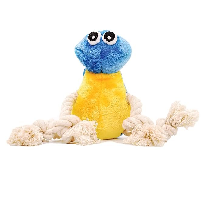 This plush dog toy is designed to be soft, safe, and engaging for everyday play. Made from durable materials with woven cotton rope legs, it offers extra strength while staying gentle on your dog’s gums. The furry bird shape, combined with a squeaker and crinkle paper inside, keeps dogs curious and entertained for longer play sessions. It’s ideal for games like fetch, light tug, or solo chewing, helping reduce boredom, anxiety, and destructive behavior at home. The lightweight design makes it perfect for puppies and small to medium dogs, while also encouraging movement and healthy exercise. The toy is easy to clean and machine washable, but supervised play is recommended, as it is not suitable for aggressive or heavy chewers.